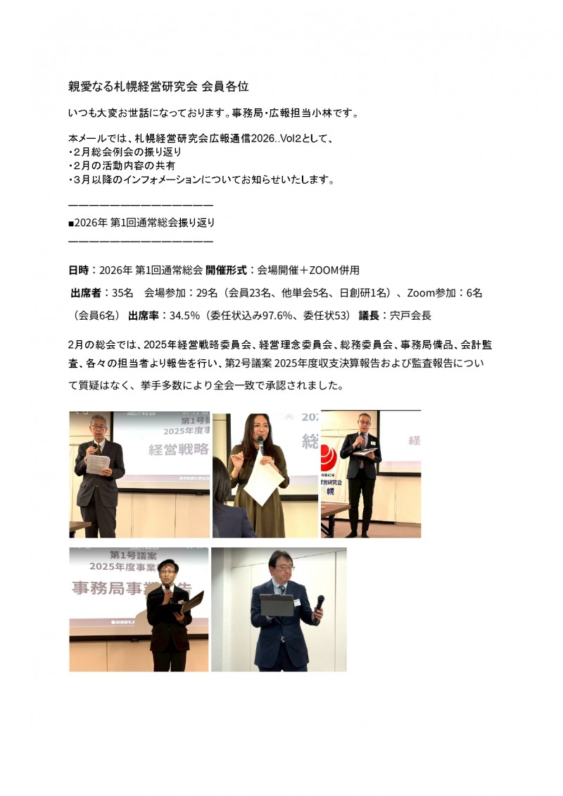 札幌経営研究会広報通信2026..Vol2として、