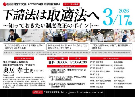 2026年3月17日(火)日創研経営研究会が主催する「本部主催勉強会」が開催されます。