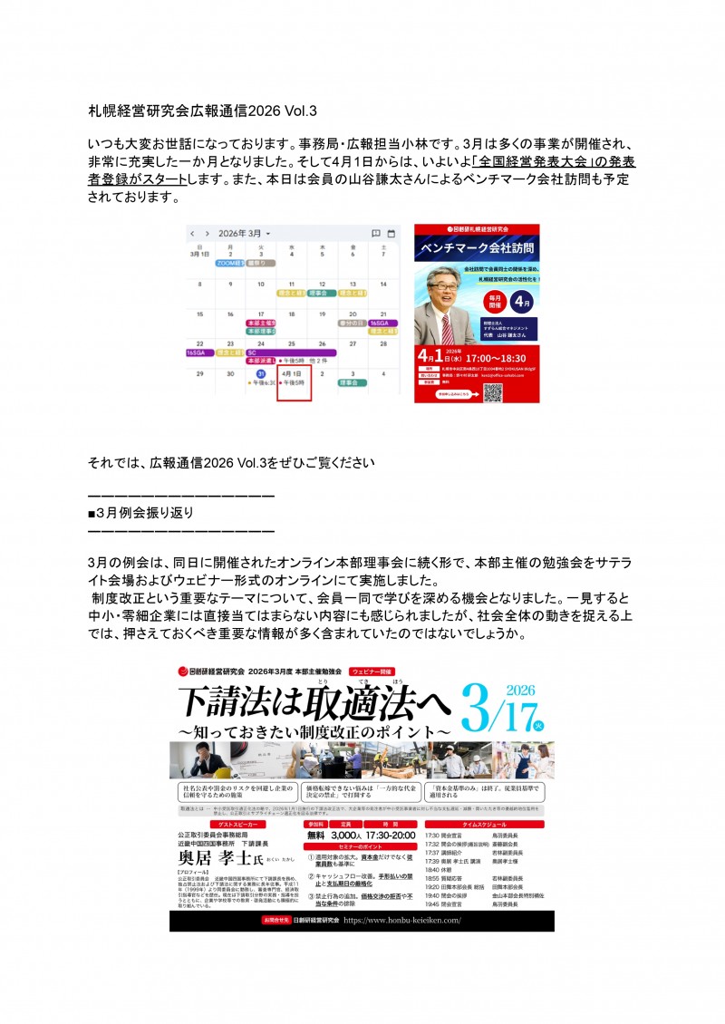 札幌経営研究会広報通信2026..Vol3として、お届けします。