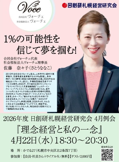 【4月例会】『理念経営と私の一念』~1%の可能性を信じて夢を叶える!!